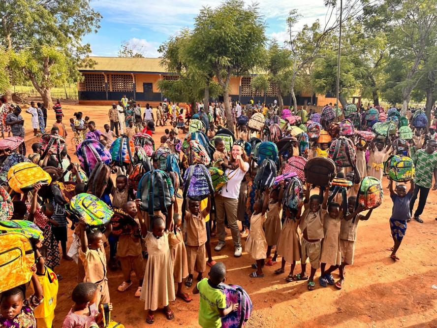 Mit der großzügigen Hilfe vieler Spender konnte für jedes der etwa 200 Kinder eine wunderschöne Schultasche gekauft werden. Die Taschen wurden von einem Frauenhaus vor Ort in Togo gefertigt und konnten wir auch dort noch den Mädchen und Frauen helfen.